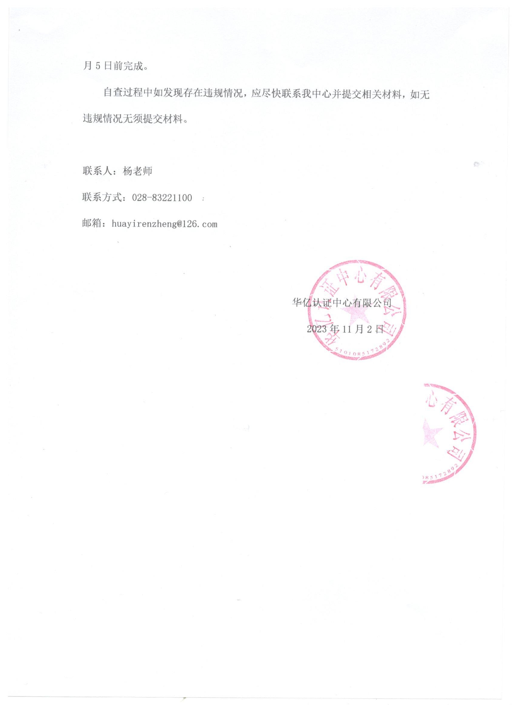 关于获证组织开展自查工作的通知